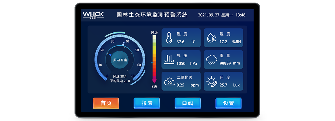 园林生态环境监测预警系统主要由监测终端、显示发布端、数据传输、服务器、监控管理软件、手机客户端等组成。为用户提供一套简单、易用、可靠、低成本的一站式解决方案。通过多维一体化的监测,实现对现场温、湿、光、二氧化碳、臭氧、负氧离子、一氧化碳、以及粉尘颗粒(PM2.5、PM10)等各类景区环境数据的实时监测。