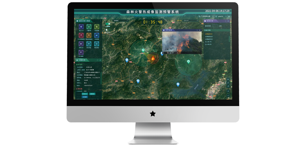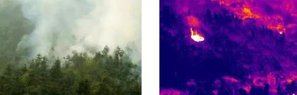 1、可见光和远红外热响应双通道成像技术,森林火灾防控行业标准监测技术。